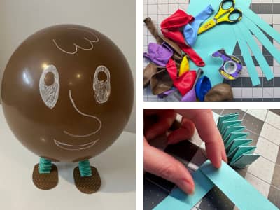 Tape everything together. (Make sure the balloon knot is between the feet.)